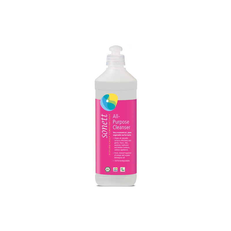 Un detergent ecologic universal care curata si protejeaza pardoseala, faianta, cabina de dus, baia, mobila de bucatarie. Se poate folosi chiar si pe autoturisme. Potrivit si pentru curatarea suprafetelor vitrate mari. Detergentul are o toleranta exceptionala privind contactul cu pielea.