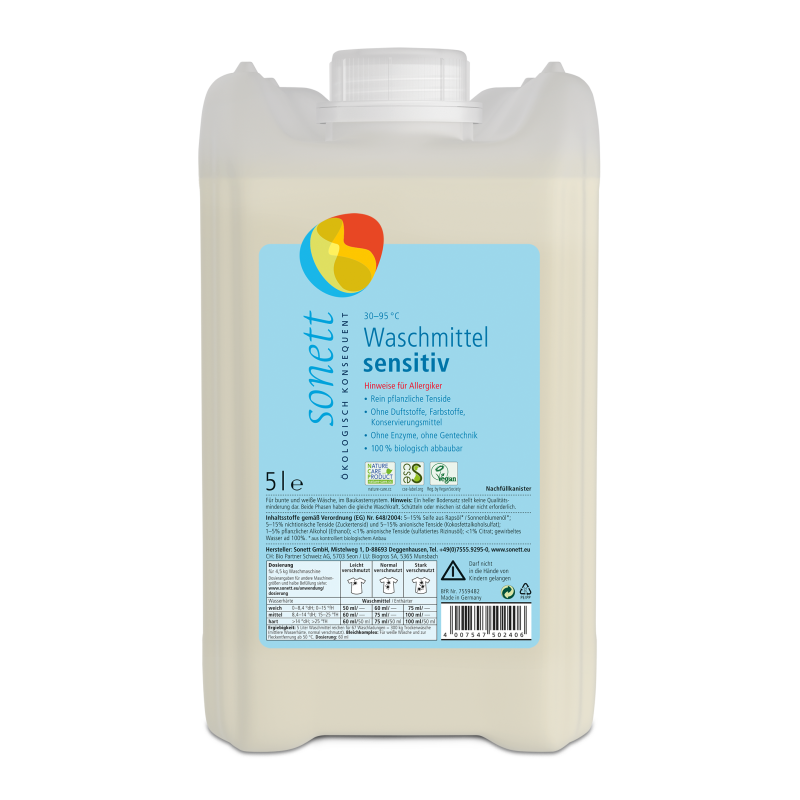 Un detergent ecologic neutru, fara parfumuri sau uleiuri esentiale, pentru haine albe si colorate din bumbac, in, canepa, sau mixturi de tesaturi. Ingredientele sunt biodegradabile si prietenoase cu pielea. Formula speciala care face fata spalarilor, inclusiv cand duritatea apei este ridicata. Spala la temperaturi cuprinse intre 30-95° C. Nu este recomandat pentru lana si matase.