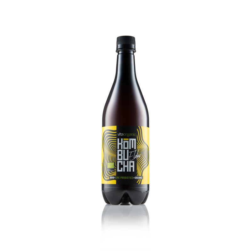 Ingrediente: Infuzie de ceai verde* (apa filtrata, ceai verde* 2%), zahar*, sirop de soc* 2%, culturi kombucha*