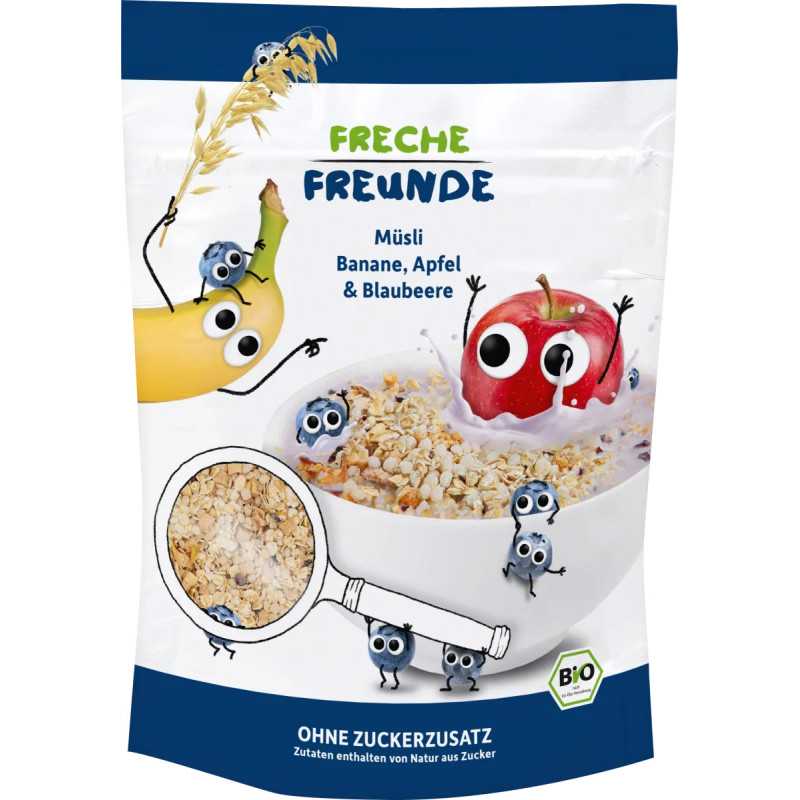 Un mod ideal de a incepe ziua pentru cei mici, musli delicios cu banane, mere si afine. Potrivite pentru copilasi incepand de la varsta de 1 an.