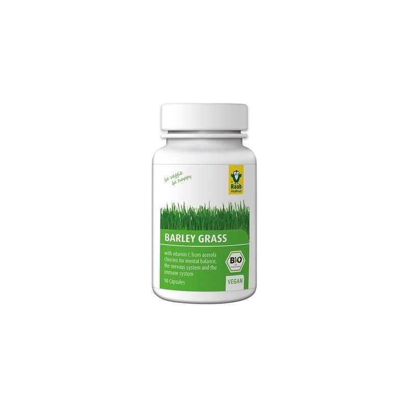 Iarba de orz este numele dat frunzelor tinere ale plantei în crestere. Capsulele RAAB contin iarba de orz din Germania si, în plus, vitamina C din acerola pentru a maximiza efectul orzului verde. Vitamina C contribuie la formarea colagenului pentru functionarea normala a pielii, a oaselor, a vaselor de sânge, a gingiilor si a dintilor. Vitamina C contribuie, de asemenea, la functionarea normala a psihicului si a sistemului nervos si imunitar.