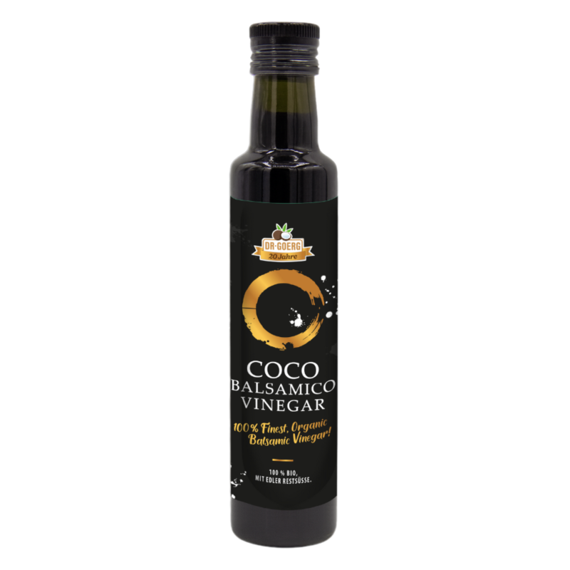 Otet balsamic premium realizat din ingrediente 100% naturale certificate organic. Otetul balsamic de cocos Dr Goerg nu contine uleiuri vegetale acesta continand doar 2 ingrediente, sirop din flori de cocos si otet din flori de cocos. Gustul Otetului balsamic de cocos Dr Goerg este unul dulce - acrisor. Acesta are o aciditate de 5% ceea ce il face un otet balsamic foarte versatil ca si utilizare. Ideal pentru condimentare, marinare, rafinare si chiar pentru coacere.