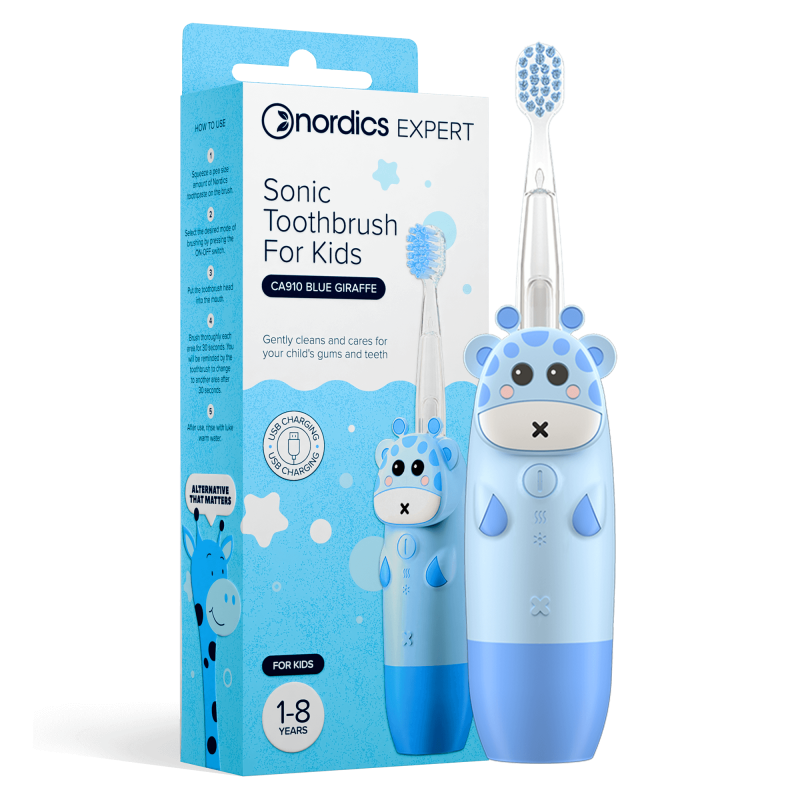 Periuta de dinti electrica pentru copii Nordics transforma procesul de spalare a dintilor intr-o activitate mult mai placuta pentru copii, usurand eforturile si imbunatatind obiceiurile de igiena. Prin miscarea pulsatorie usoara, periuta de dinti electrica asigura o curatare profunda, chiar si cu abilitatile motorii fine, nedezvoltate ale mainii unui copil, sau cu dintii de lapte care retin placa.