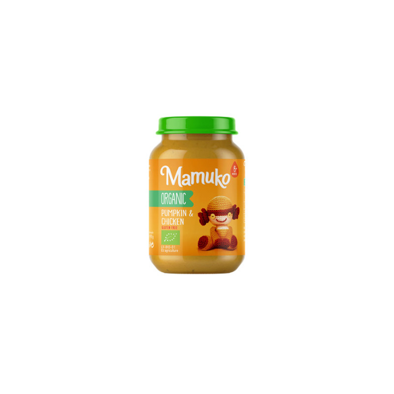 Ingrediente: dovleac* 45%, apa, cartofi*, pui* 8%.