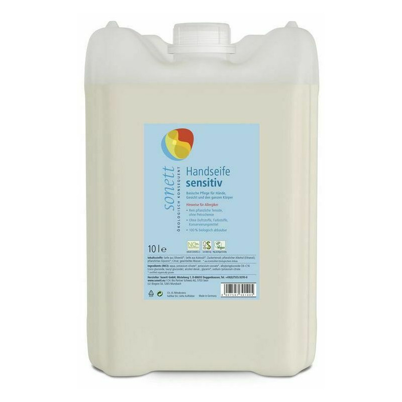 Sapun lichid ecologic neutru fara parfum sau uleiuri esentiale, pentru maini, fata si corp, delicat cu pielea. Ideal de folosit de catre intreaga familie, dar si de catre restaurante, cafenele, hoteluri, scoli, gradinite si alte asemenea locuri unde sapunurile solide sunt interzise. Poate fi folosit in dispensere pe perete.