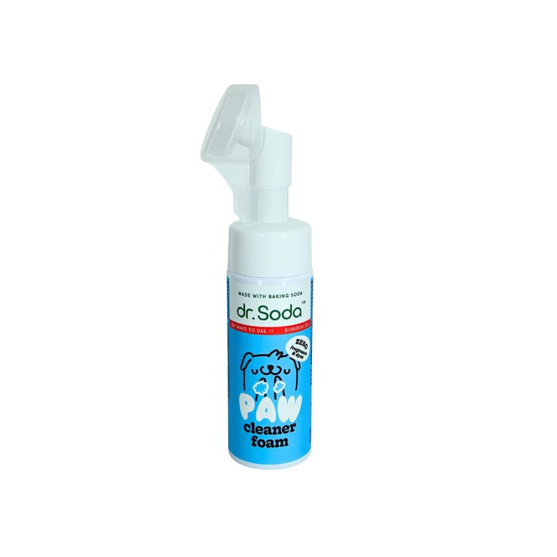 Spuma pentru curatarea labutelor - cu aplicator de silicon. Principalul ingredient activ este bicarbonatul de sodiu, dar compozitia este imbogatita si cu sorbitol, pantenol si extract de ovaz pentru hidratarea suplimentara si calmarea pielii labutelor animalului de companie.