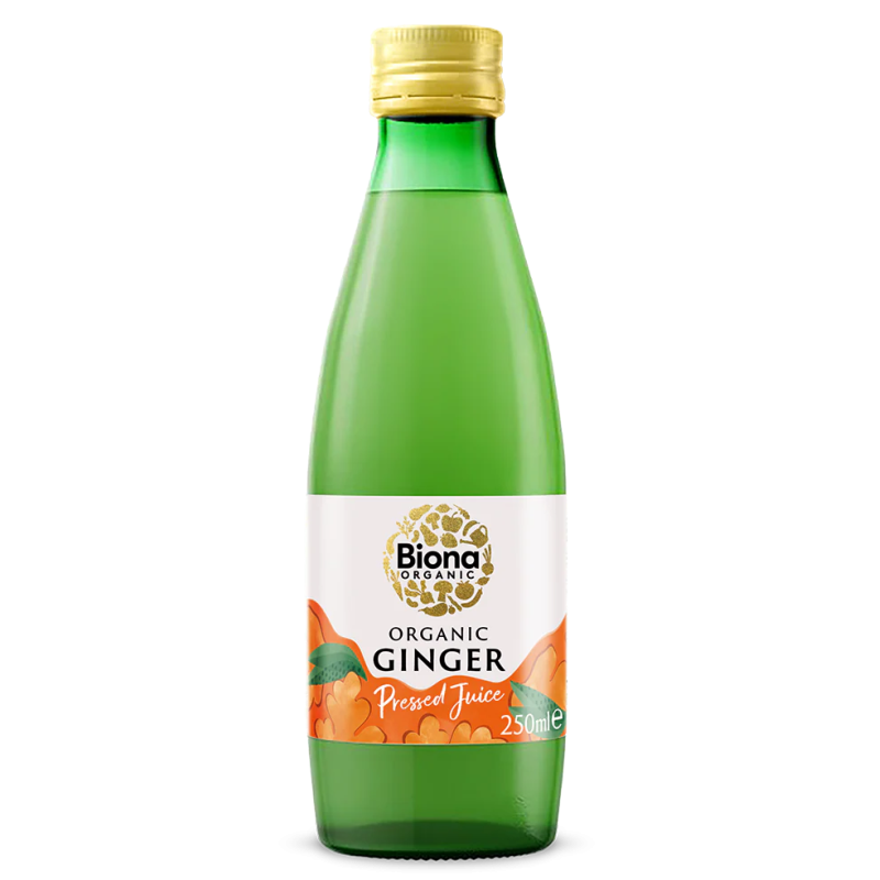 Sucul de ghimbir Biona este 100% obtinut din ingrediente organice fara adaos de zahar. Acest suc de ghimbir aromat si puternic este stors din ghimbir organic, perfect pentru a-l adauga in sucuri, piureuri si marinate. Dilueaza-l simplu in apa fierbinte pentru o bautura revigoranta.