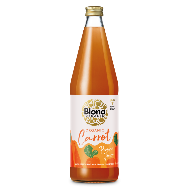 Sucul de morcovi organic Biona aduce bunatatea naturala a uneia dintre cele mai hranitoare legume din lume intr-un suc delicios. Morcovii provin din ferme atent selectate, unde sunt cultivati organic, recoltati si presati imediat pentru a le capta intreaga savoare. Lucrul perfect pentru a va revitaliza corpul si mintea. Sucul de morcovi poate fi servit simplu sau ca un plus hranitor pentru smoothie-ul tau de dimineata, poate fi adaugat in supe si ciorbe pentru un aport hranitor.