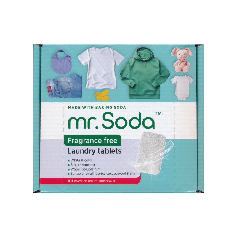 Tabletele pentru masina de spalat rufe cu bicarbonat de sodiu Mr.Soda sunt concepute pentru ingrijirea rufelor albe si colorate. Formula puternica elimina petele si murdaria, pastrand culoarea tesaturii chiar si dupa spalari frecvente.
